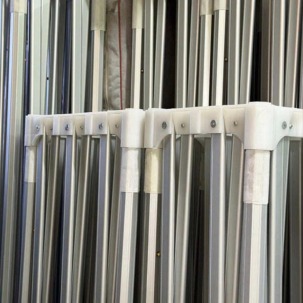 - Усиленные соединения равномерно распределяют нагрузку по каркасу. Шатёр меньше «играет» на ветру, сохраняет геометрию и устойчивость даже при существенных порывах ветра. Обычные слабые соединения часто становятся причиной перекоса конструкции.
